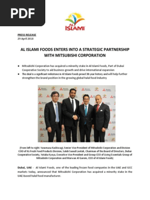 Sale of a minority stake in al islami to mitsubishi corporation the japan based globally integrated business enterprise. At al islami foods we dont just sell products we serve a community of families who celebrate food. The jawhara brand was born in 1979 when haj saeed bin ahmed al lootah established the first hotel in dubai that offered its services within the guidelines of the united arab emirates rich culture of hospitality.