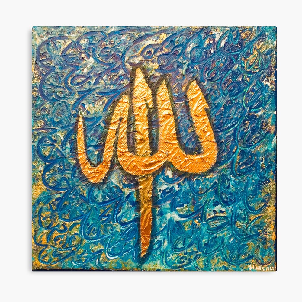 Arabic Calligraphy Painting Allah Allah Islamic Islamic Gold And Blue Photographic Print By Sororelles Redbubble