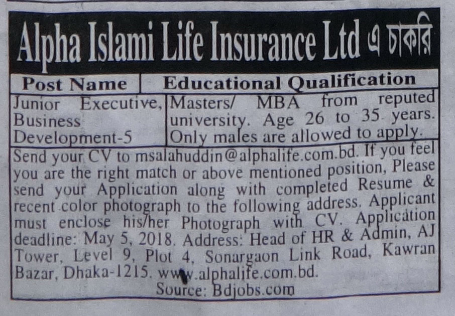 Alpha Islami Life Insurance Ltd Job Circular 2018 Newbdjobs Com Update Job News Site In Bangladesh
