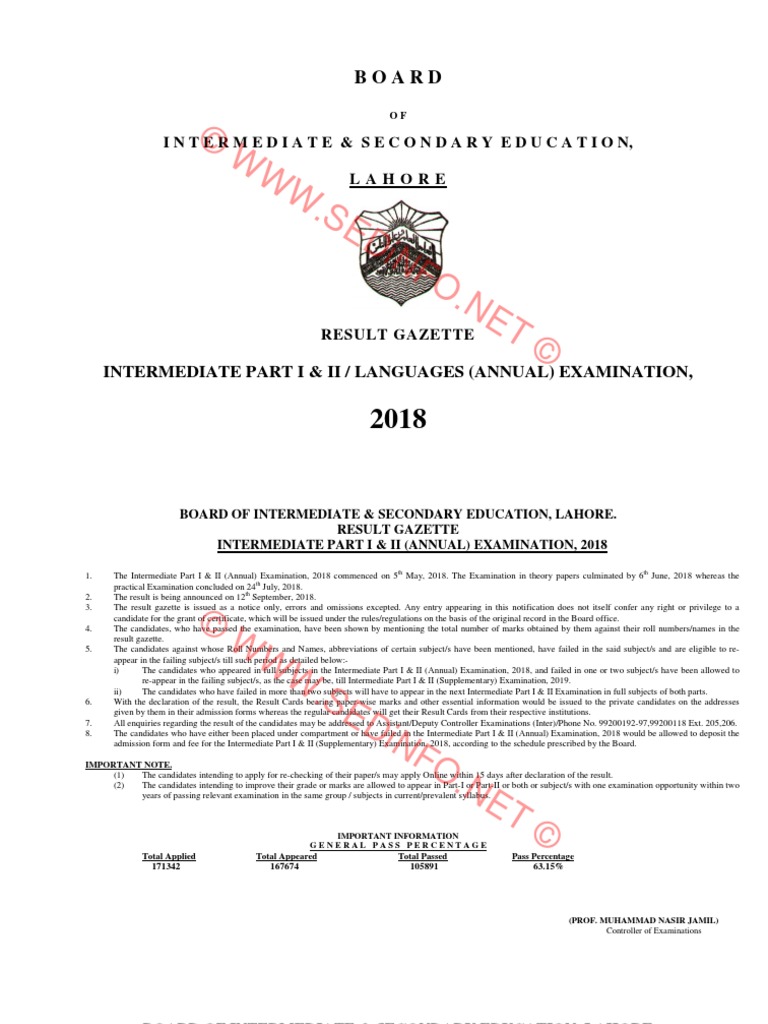 Http Www Result Pk Downloads 2018 Results Bise Lahore Final Gazette A18 12 Pdf