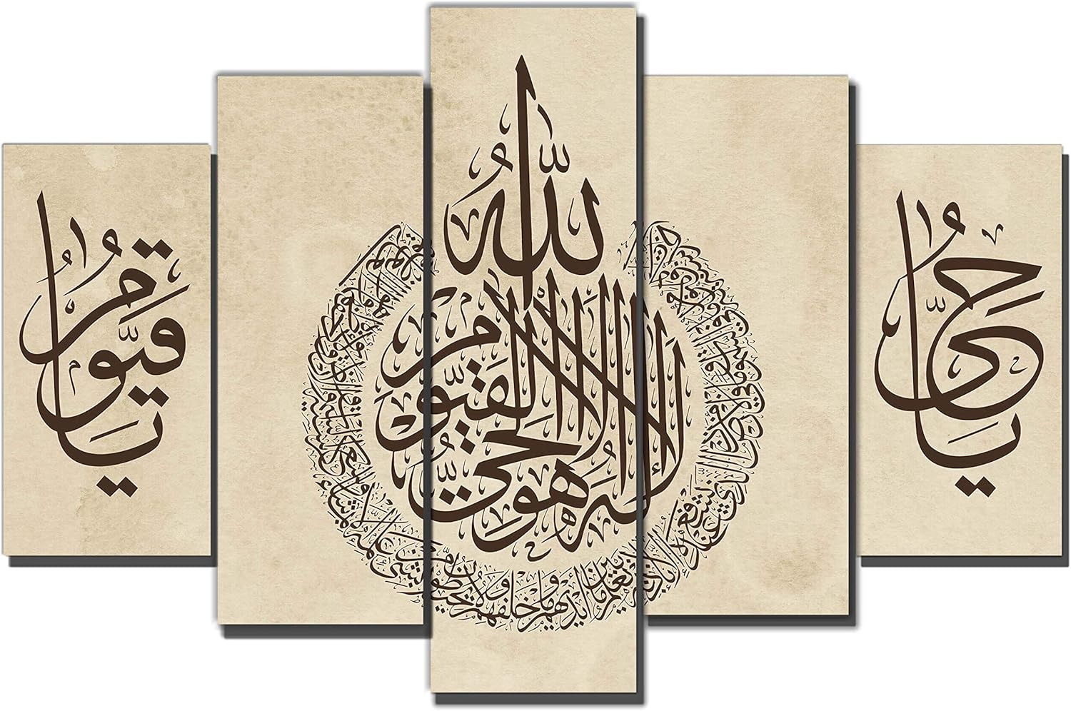 Amazon Com Islamic Wall Art 5 Panels Collection Ayat Ul Kirsi Brown Wall Art