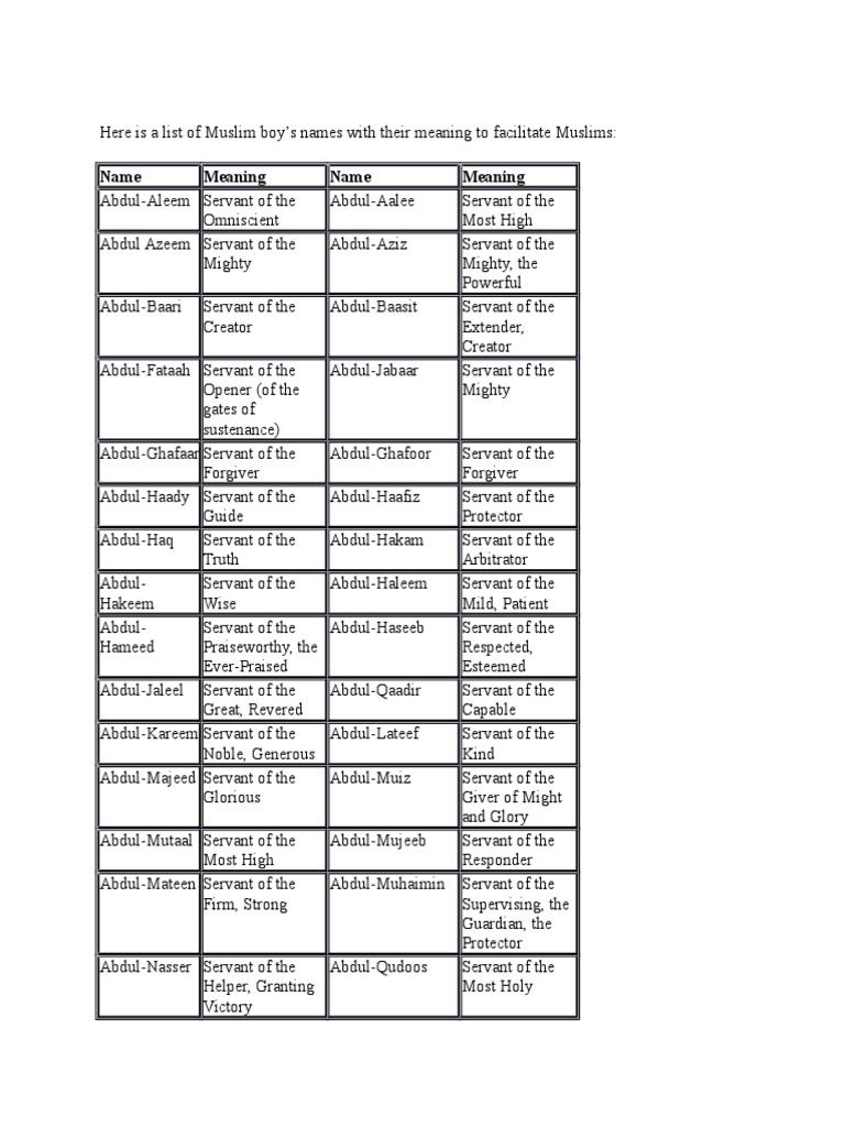 Muslim Boys Names Meanings List By Sohail