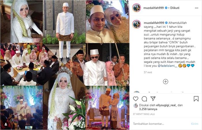 Rayakan Ulang Tahun Perkawinan Dengan Fadel Islami Muzdalifah Unggah Foto Momen Pernikahannya Serta Tuliskan Pesan Romantis Untuk Sang Suami Semua Halaman Grid Id