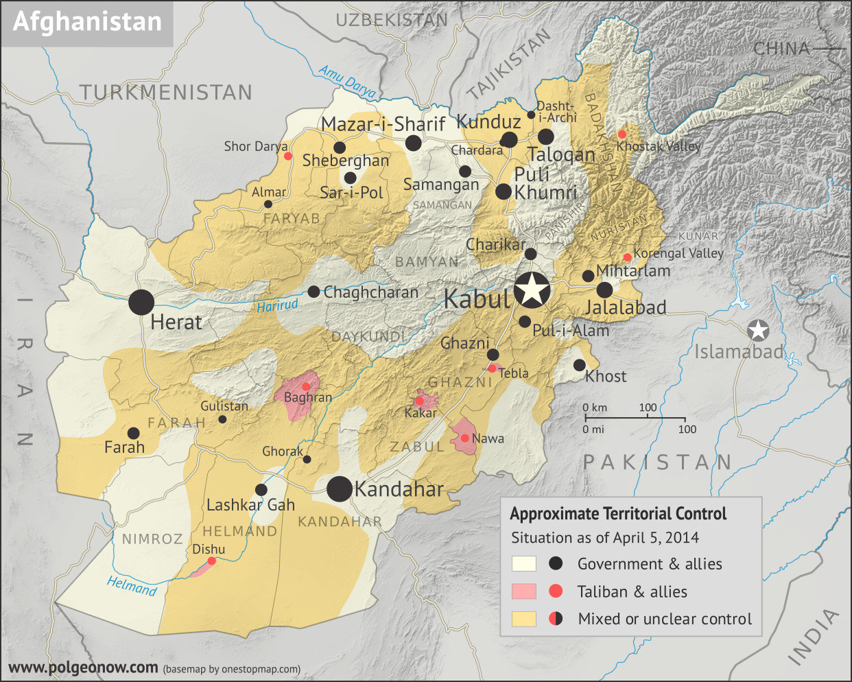 Afghanistan Map Of Taliban Control In April 2014 Political Geography Now