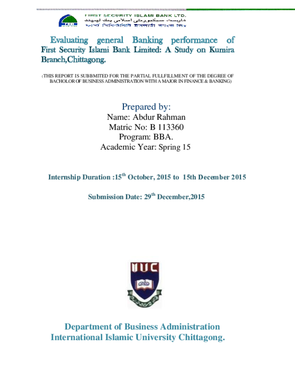 Pdf An Internship Report On Investment Operation Of First Security Islami Bank Ltd A Study On Jashore Branch Submitted By Submitted To Shuvo Pandey Academia Edu