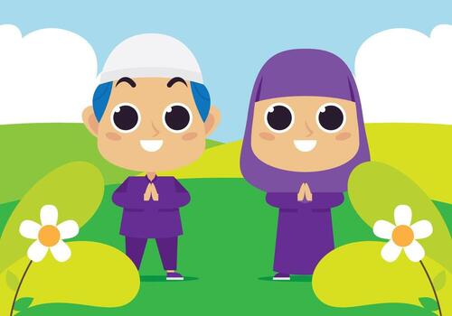 Muslim Children Greeting Card Vector Art Graphics Freevector Com