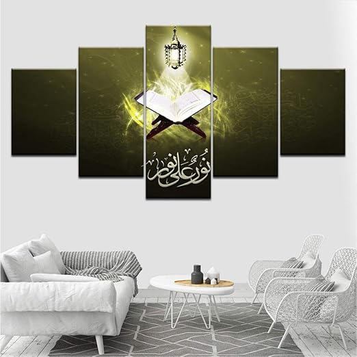 Amazon Com Yangshuang Modular Pictures Wall Art Hd Prints 5 Pieces Islamic Canvas Muslim Painting Bedside Background Home Decoration Artwork Poster Posters Prints