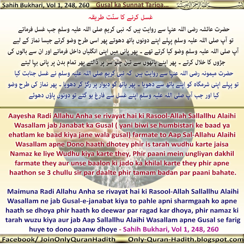 Only Quran Hadith Gusal Ka Sunnat Tariqa
