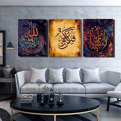 Amazon Com Faicai Art Arabic Islamic Calligraphy Wall Art Canvas Prints Red Purple Yellow 3 Piece Abstract Oil Paintings Printed Modern Home Decor Paintings For Framed Ready To Hang 12x16inchx3pcs Posters Prints