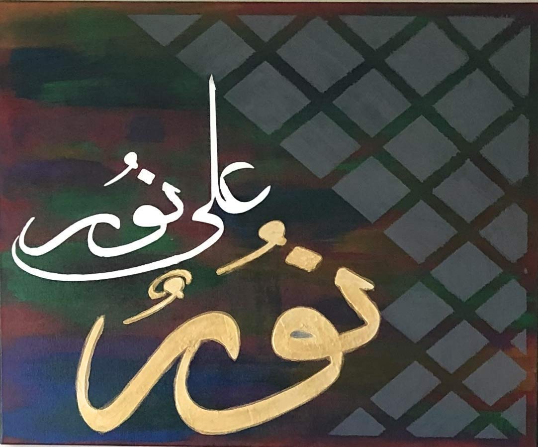 Amazon Com Noorun Ala Noor Islamic Hand Painted Abstract Arabic Calligraphy Decorative Wall Art Acrylic Painting Canvas Handmade Home Decor Gift Stretched And Ready To Hang 100 Handmade In The Usa Handmade