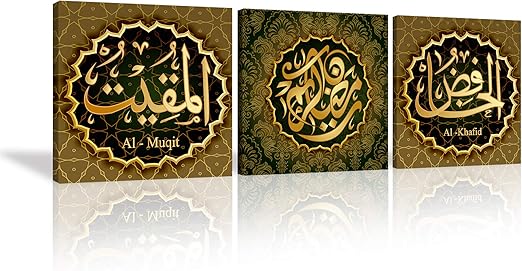 Amazon Com Kalawa 3 Piece Islamic Wall Art Islamic New Year Canvas Print Home Decor Arabic Calligraphy Decorative Artwork Stretched And Ready To Hang 100 Handmade 20 W X 20 H X 3 Panels