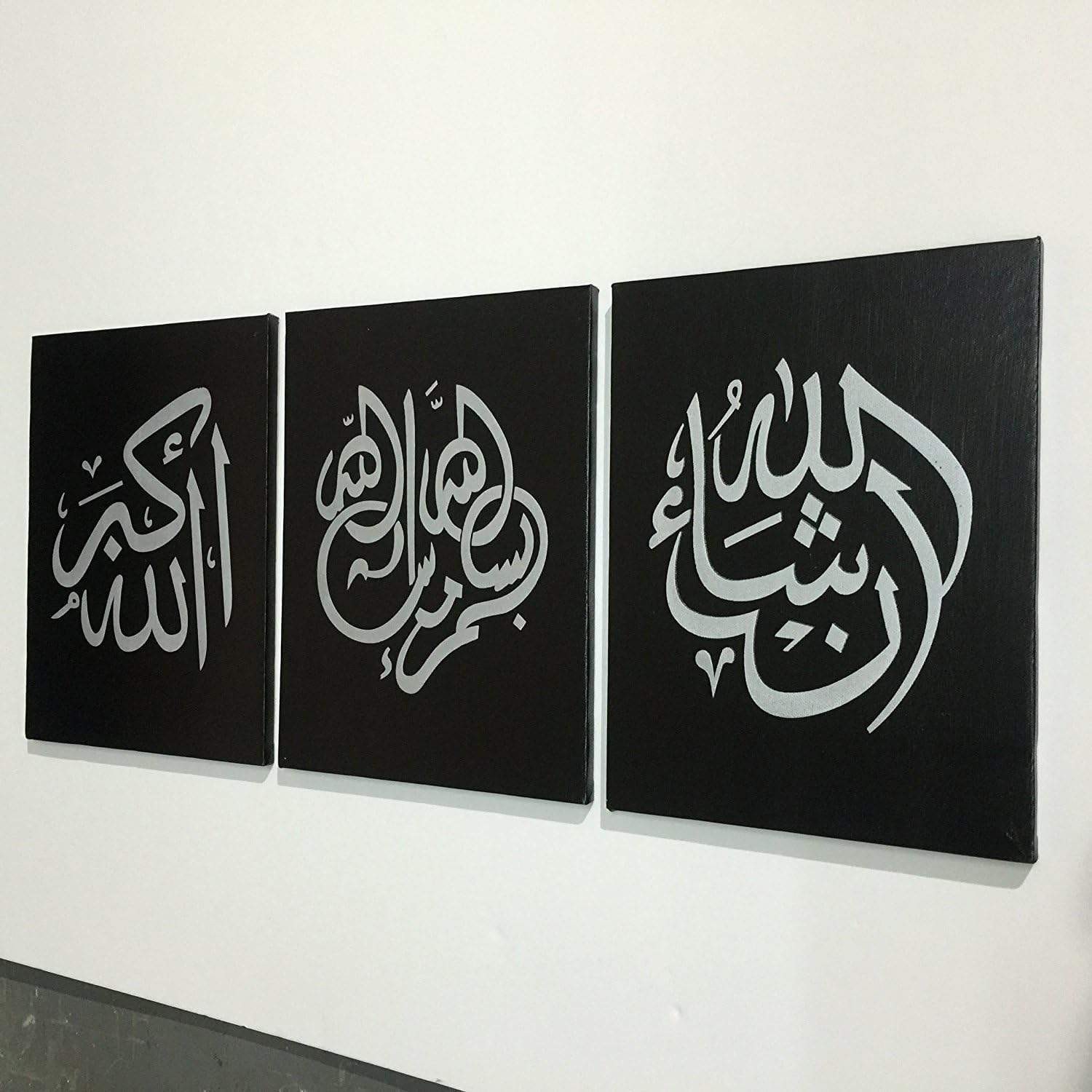 Amazon Com Yatsen Bridge Arabic Calligraphy Islamic Handmade Pictures Wall Art Oil Paintings On Canvas 3 Pcs For Living Room Home Decorations Wooden Framed Black Silver Paintings