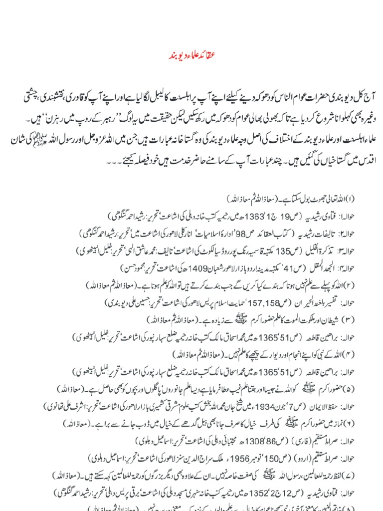 Deobandion Ky Aqaid Aqaid Ulama E Deoband Deobandi Mazhab Ky Kufria Aqaid Deobandiyat Exposed Pdf Document