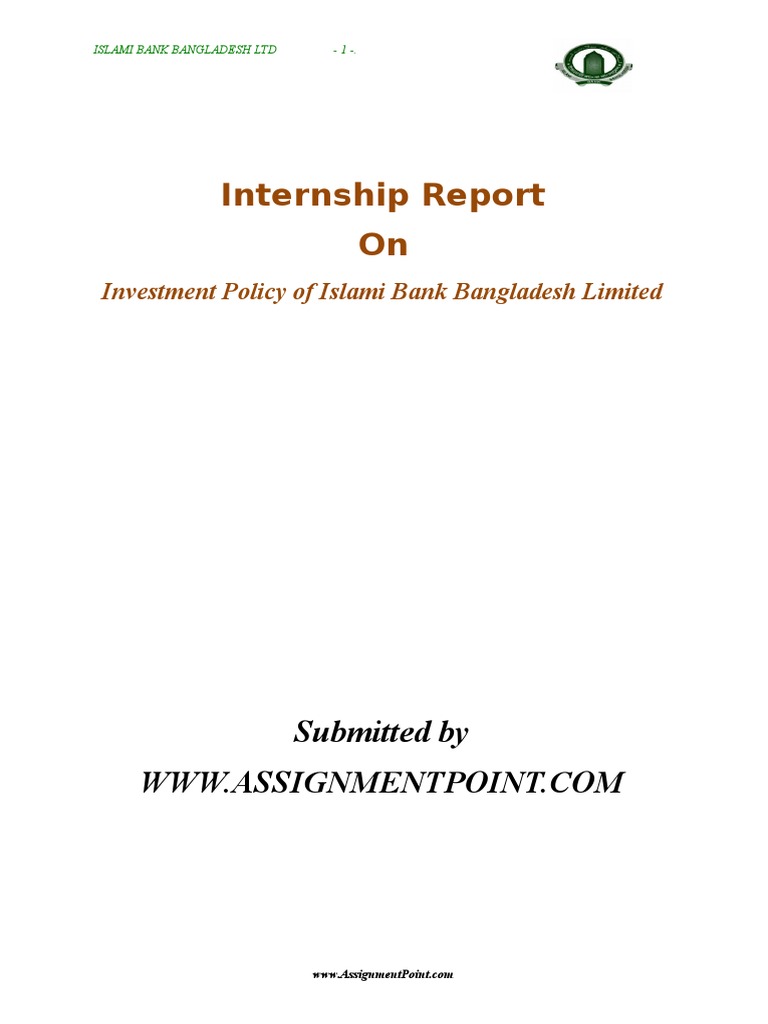 Investment Policy Of Islami Bank Bangladesh Limited Islamic Banking And Finance Internship