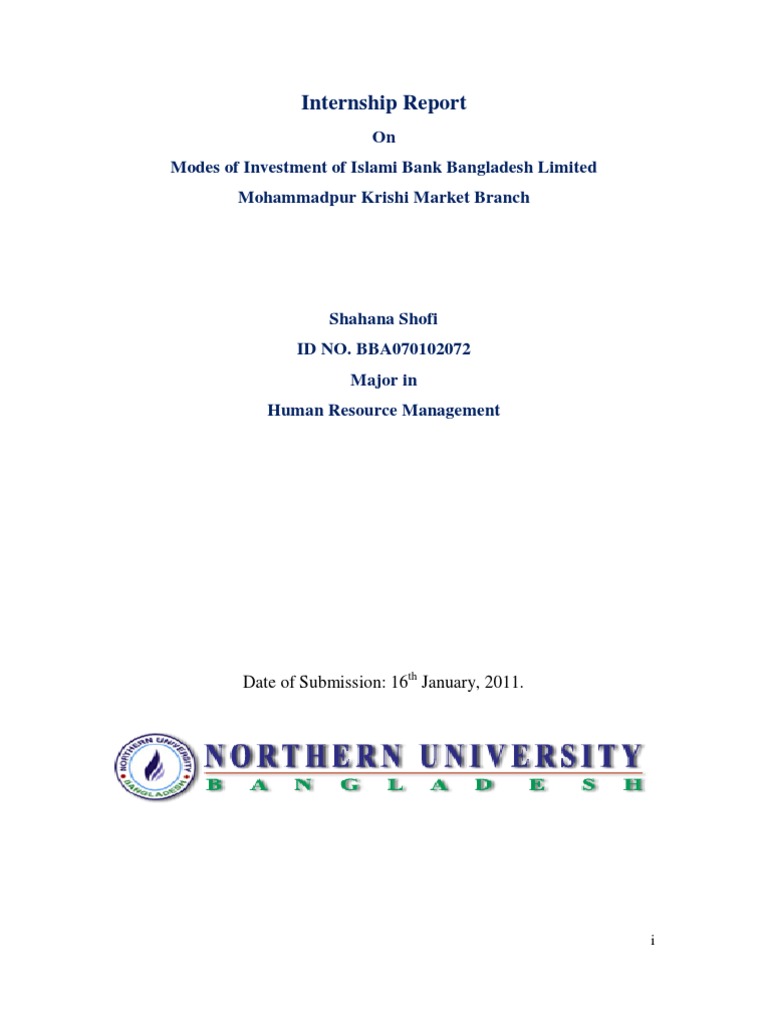 Internship Report Modes Of Investment Of Islami Bank Bangladesh Limited Mohammadpur Krishi Market Branch Assignmentbasket Com Islamic Banking And Finance Stocks