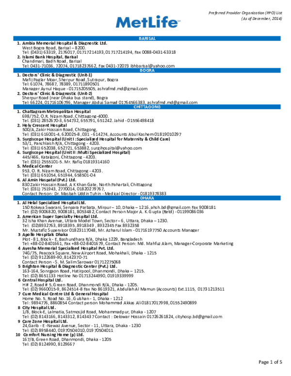 Page 1 Of 7 Metlife Bangladesh Islami Bank Community Hospital Dinajpur Limited Medical College Road Upashahar Dinajpur Tel 0531 51409 01731079317 77 Zia Heart Foundation