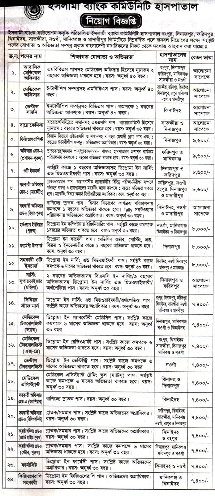 Islami Bank Community Hospital Job Circular Official Published By Daily Newspaper And Online Job Portal Jobcar Hospital Jobs Job Circular Community Hospital