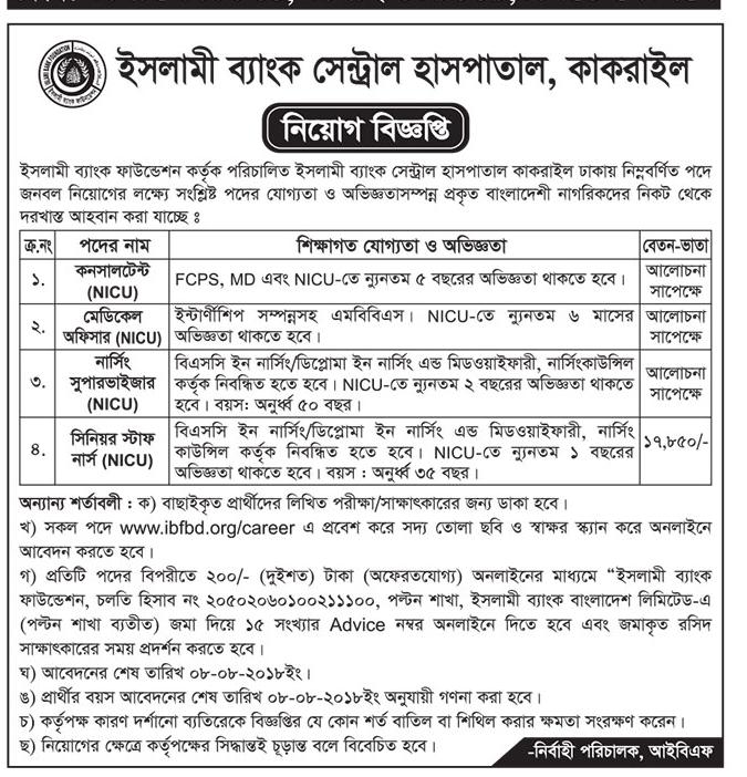 Islami Bank Central Hospital Kakrael Jobs Circular 2018