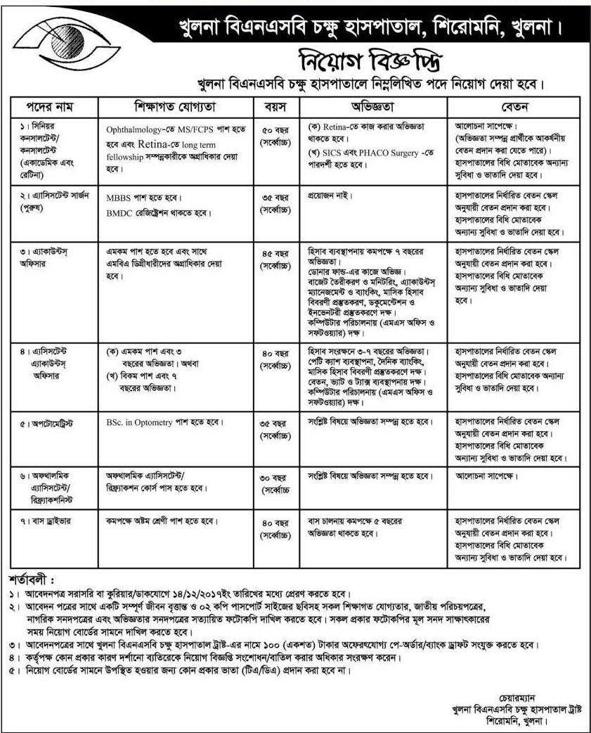 Khulna Bnsb Eye Hospital Job Circular 2018 Kbnsbeyehospital Org Lekhapora Bd Jobs