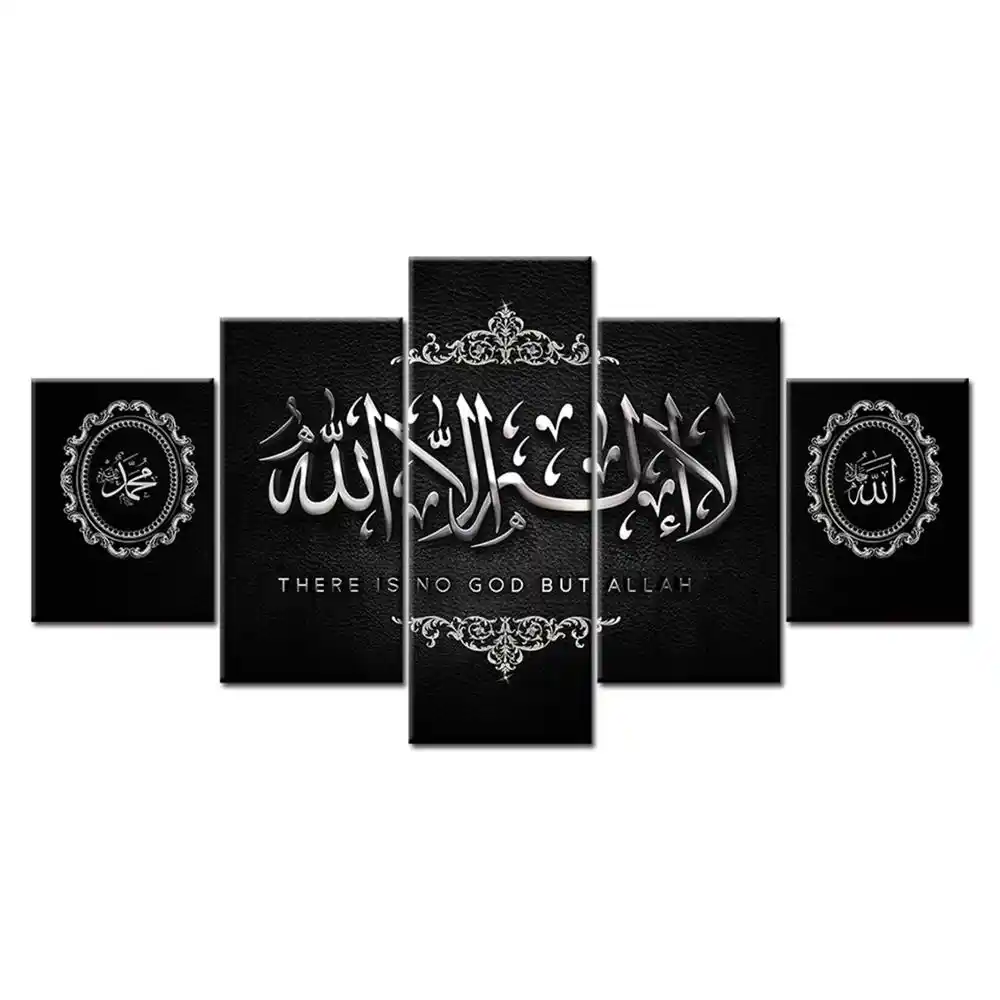 Muslim Bible Poster Wall Art Islamic Frame Allah The Quran Canvas Painting 5 Pieces Hd Print Living Room Home Decoration Picture Aliexpress