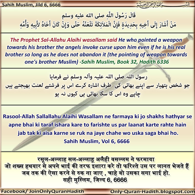 Only Quran Hadith Hadith Jo Shaksh Hathyar Se Apne Bhai Ki Taraf Ishara Karey To Farishte Us Par Laanat Bhejte Hain