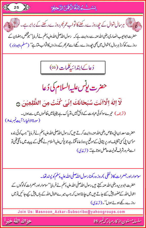 Shawal K 6 Rozay Hazrat Younus A S Ki Dua Somwar Ore Jumraat K Nafali Roza Best Right Way