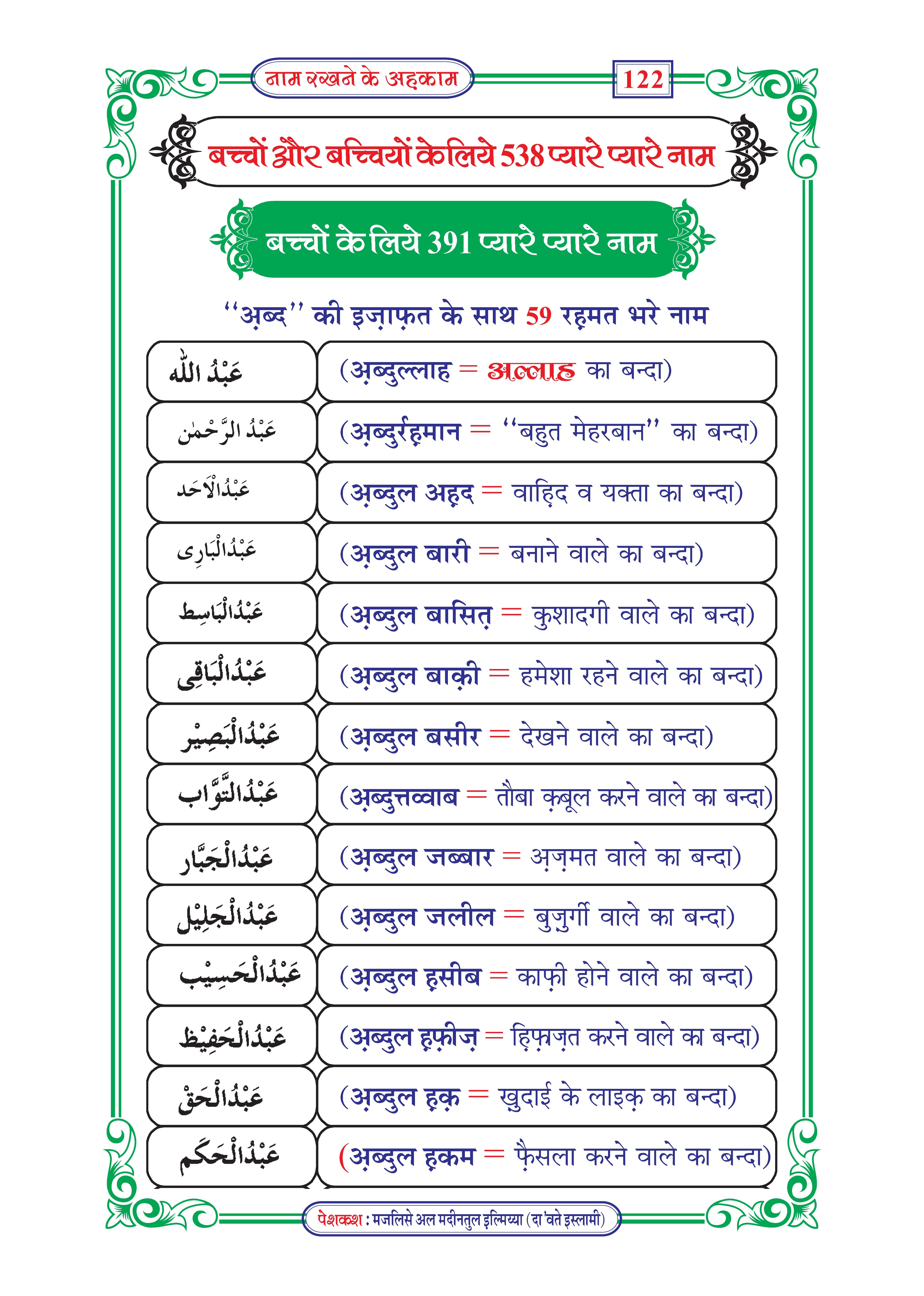 Bachon K Islami Naam Or Un Ka Matlab Pdf Urdu Library
