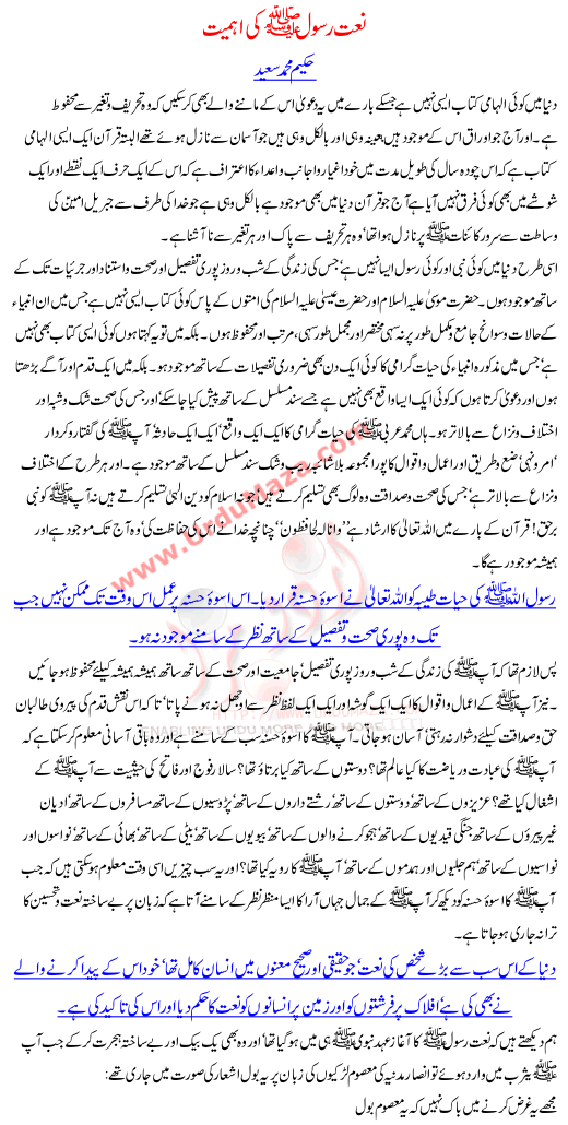 Urdu Islamic Article Importance Of Naat E Rasool E Pak Pbuh In Islam An Touching Article By Hakeem Muhammad Saeed Shaheed R A
