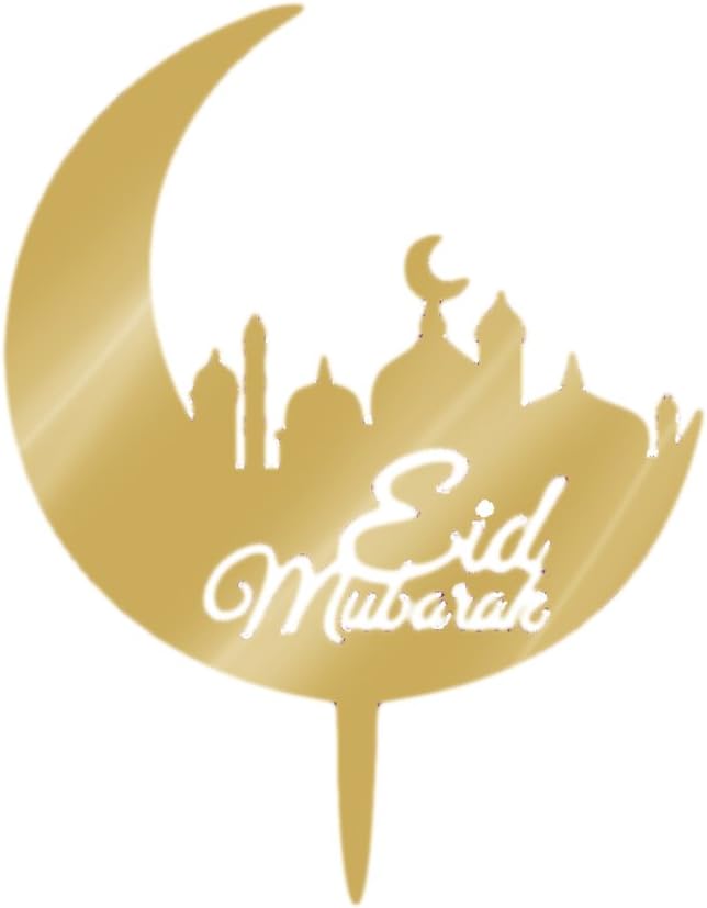 Amazon Com Bestoyard Muslim Eid Mubarak Acrylic Mirror Moon Shape Cupcake Topper Birthday Wedding Party Decor Food Pick Golden Toys Games