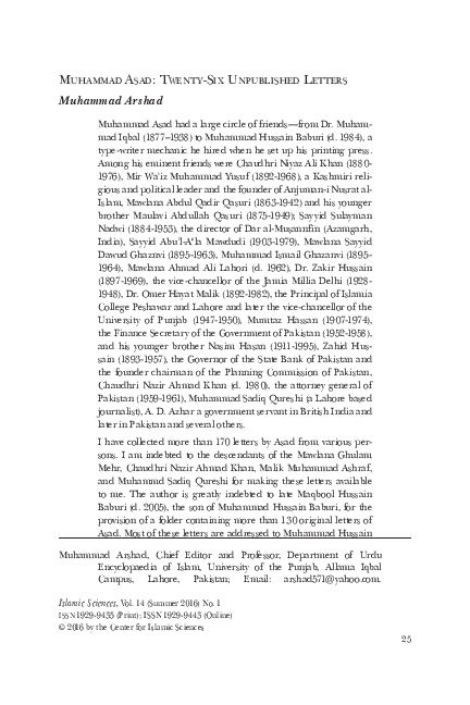 Pdf Muhammad Asad Twenty Six Unpublished Letters Muhammad Arshad Academia Edu