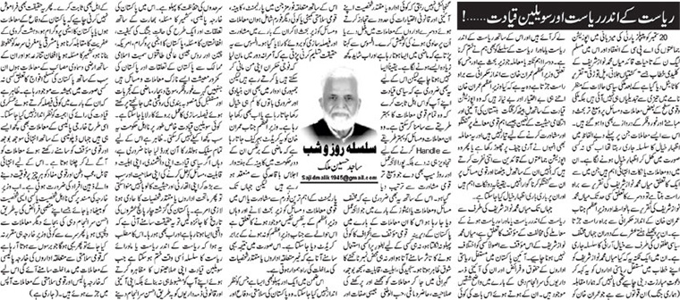 Riyasat Ke Andar Riyasat Aur Civilian Qiyadat Urdu Column By Sajid Hussain Malik 01 October 2020 Darsaal