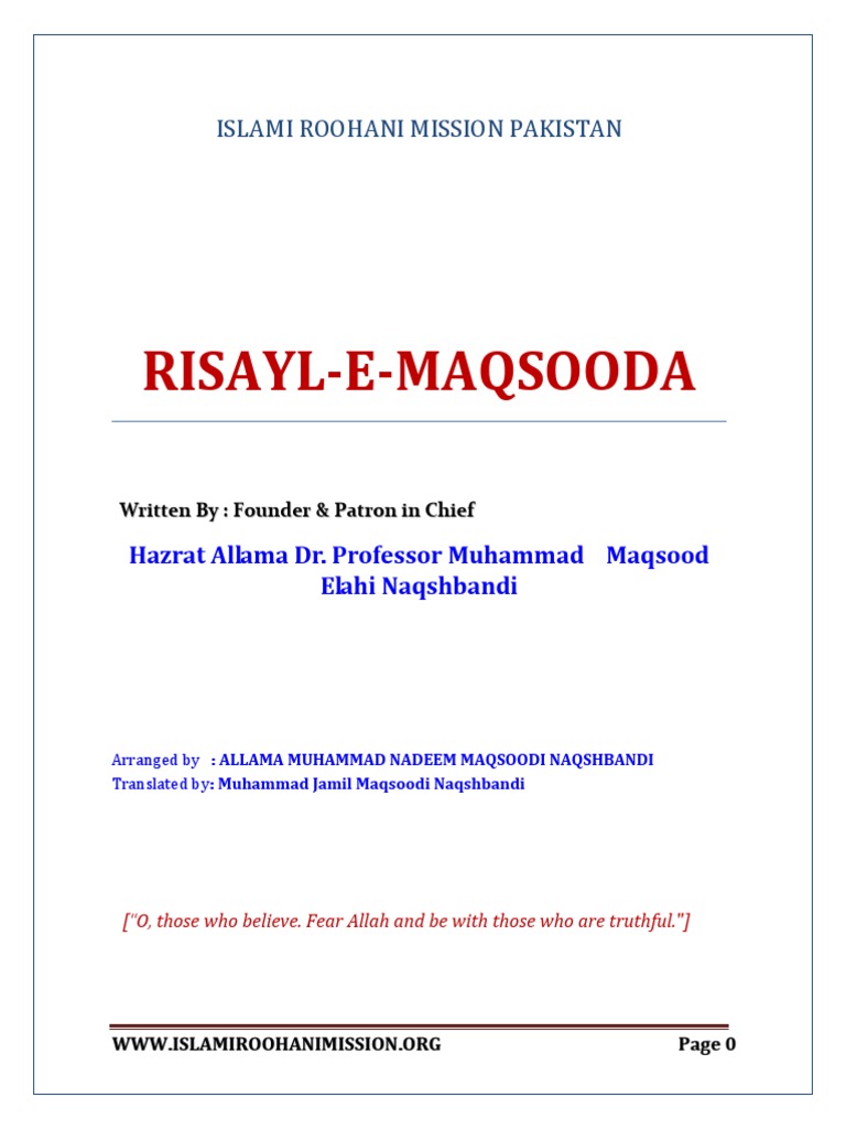 Pakistan K Baare Mai Basharat By Islami Roohani Mission Official