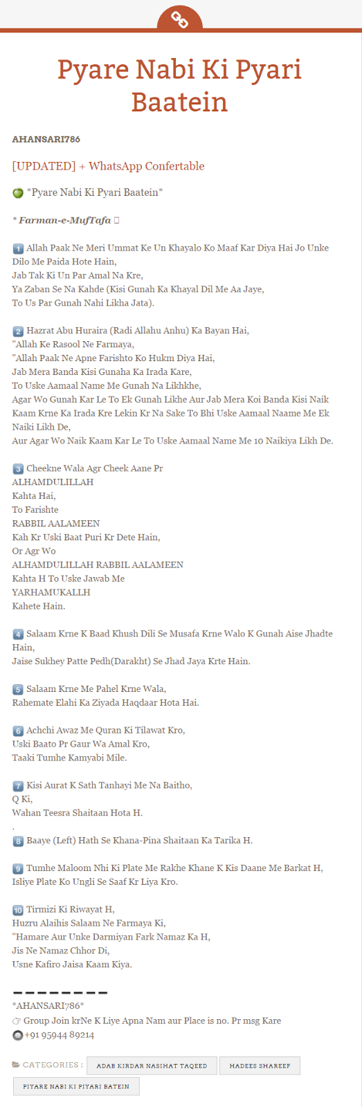 Pyare Nabi Ki Pyari Baatein Ahansari786 Br Islamic Hadees Collection