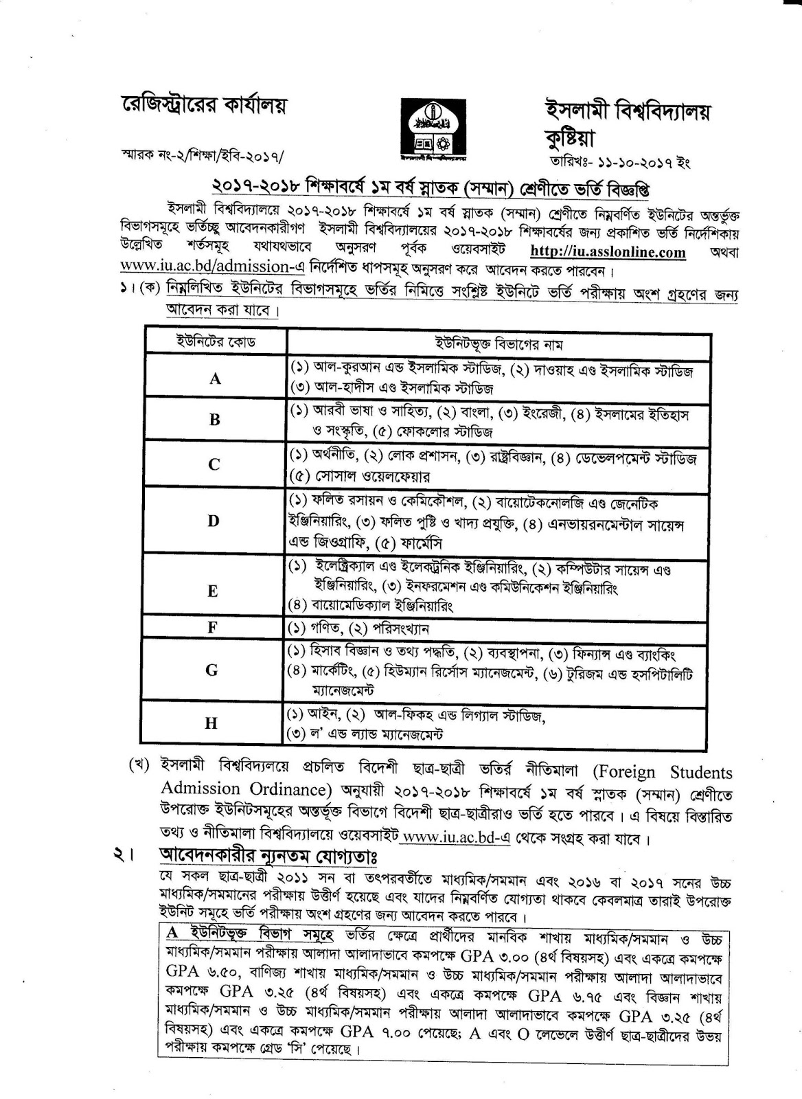 Islamic University Admission Circular 2018 19 University Admissions Admissions University