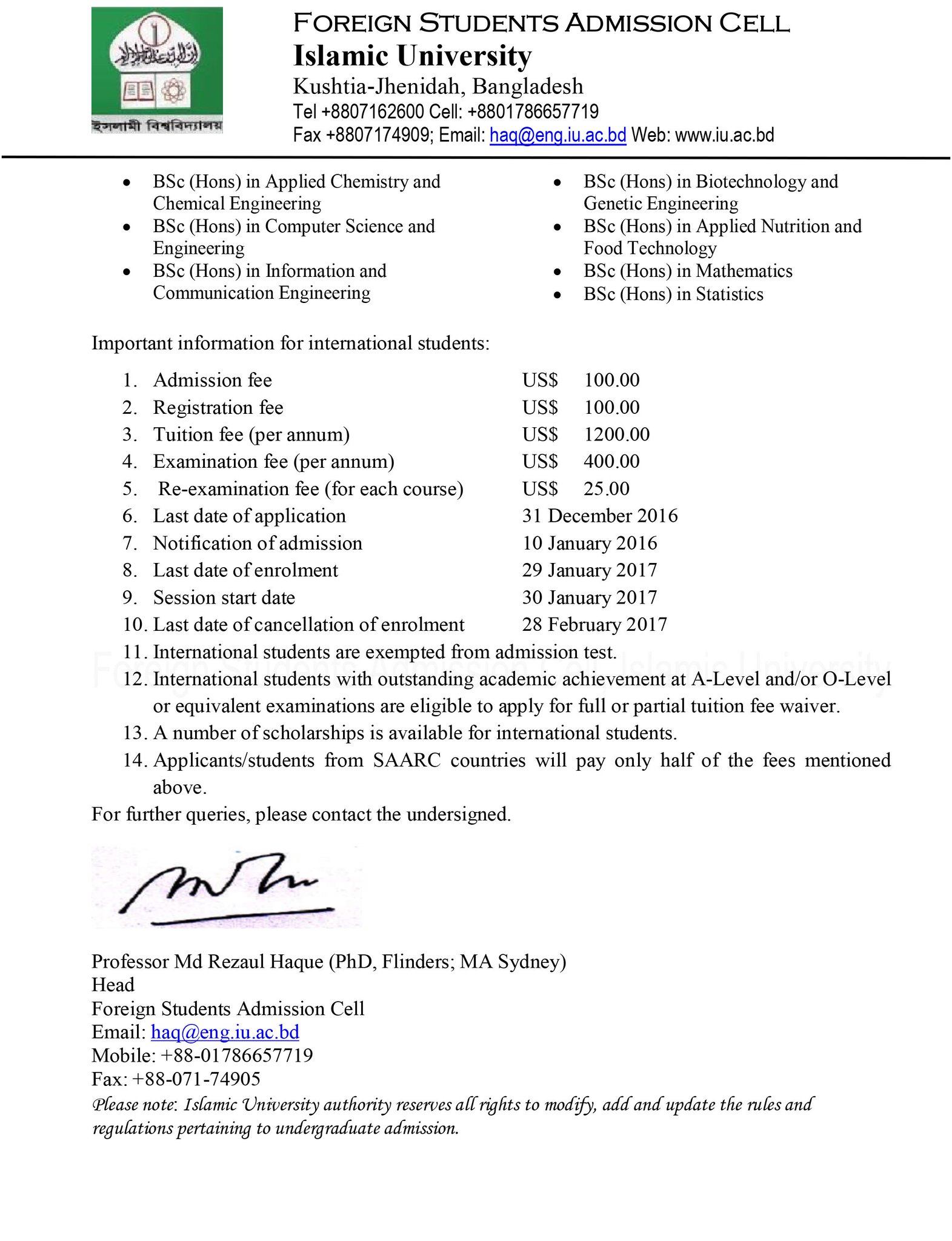 Al Hadith Iu Bd On Twitter Admission Circular For Foreign Students In The Academic Year 2016 2017 Islamic University Kushtia Bangladesh Https T Co Ph64ph6qmd Https T Co Qyxwjmalgd