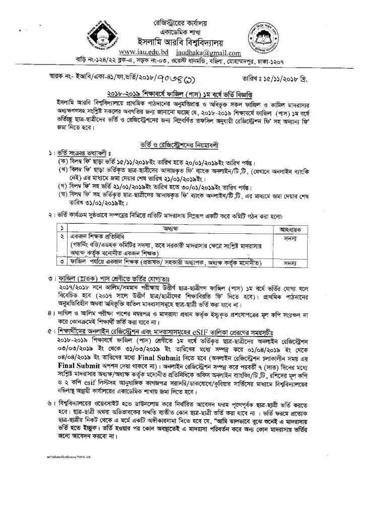 Islamic Arabic University Admission Circular 2018 2019 Www Iau Edu Bd Bangladesh Education Portal