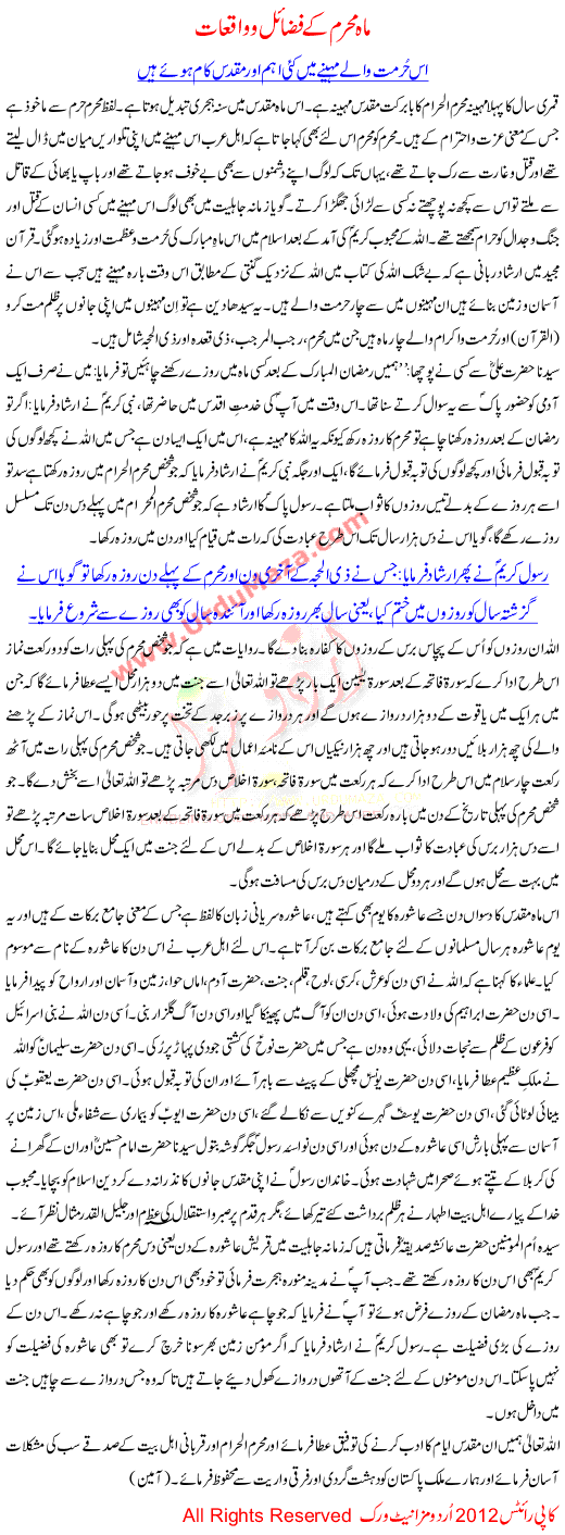Urdu Islamic Article Mahe Muharam K Fzail O Waqiat