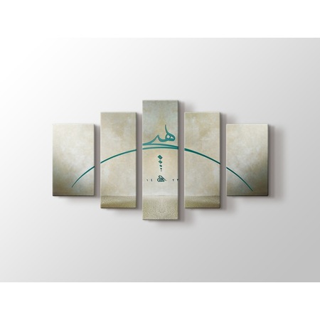Islami Vav Cami Resimli 5 Parcali Yesil Kanvas Tablo Meteor Galeri
