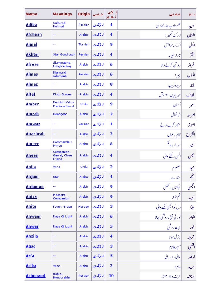 Largest Collection Of Pakistani Girls Names With Urdu Meanings Web Pk
