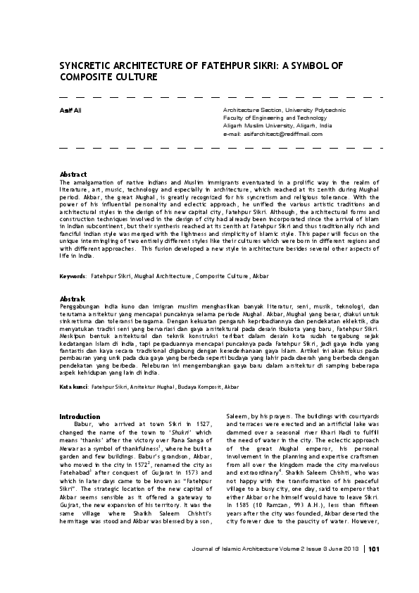 Pdf Syncretic Architecture Of Fatehpur Sikri A Symbol Of Composite Culture Asif Ali Academia Edu