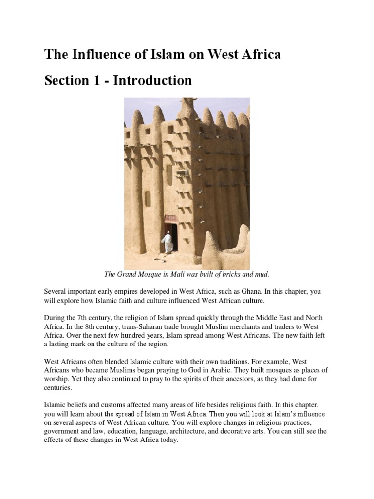 The Influence Of Islam On West Africa Text West Africa Abrahamic Religions