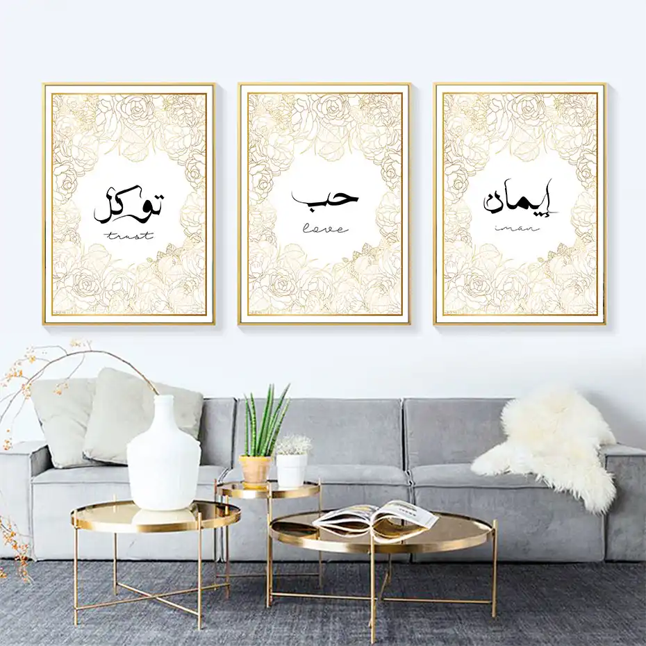Islamic Gold Floral Border Arabic Calligraphy Inspiration Quotes Canvas Painting Poster Print Wall Art Picture Living Room Decor Aliexpress