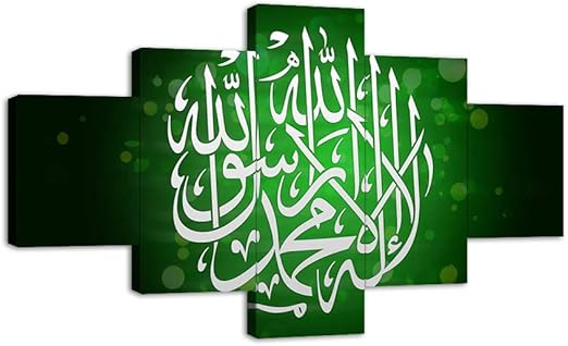 Amazon Com Green Modern Islamic Wall Art Muslim Canvas Painting Printed Mecca Pictures 5 Pieces Posters Home Decor Artwork Allah Arabic Calligraphy Arabic Framed Bedroom Living Room 50 Wx24 H Artwork 21 Posters Prints