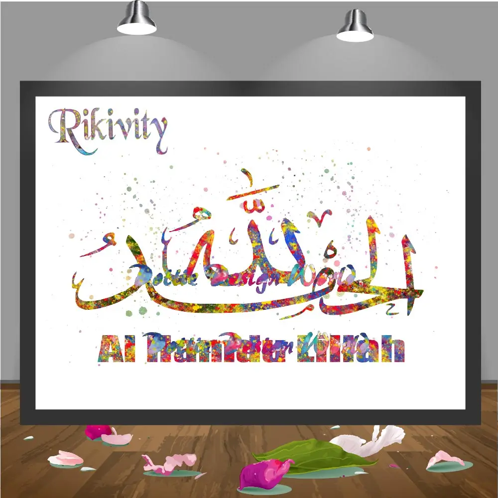 Islamic Calligraphy Al Hamdu Lillah Watercolor Canvas Painting Muslim Wall Art Poster Print Picture Home Decoration Wall Hanging Prints Pictures Canvas Paintingwall Hanging Aliexpress