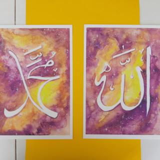 Allah Muhammad Watercolor Islam Calligraphy Art Print Shopee Malaysia