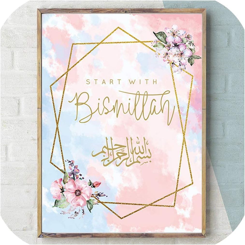 Islamic Art Wall Painting Arabic Calligraphy Hd Prints And Watercolor Flowers Posters Muslim Living Room Study Wall Pictures Art Aliexpress