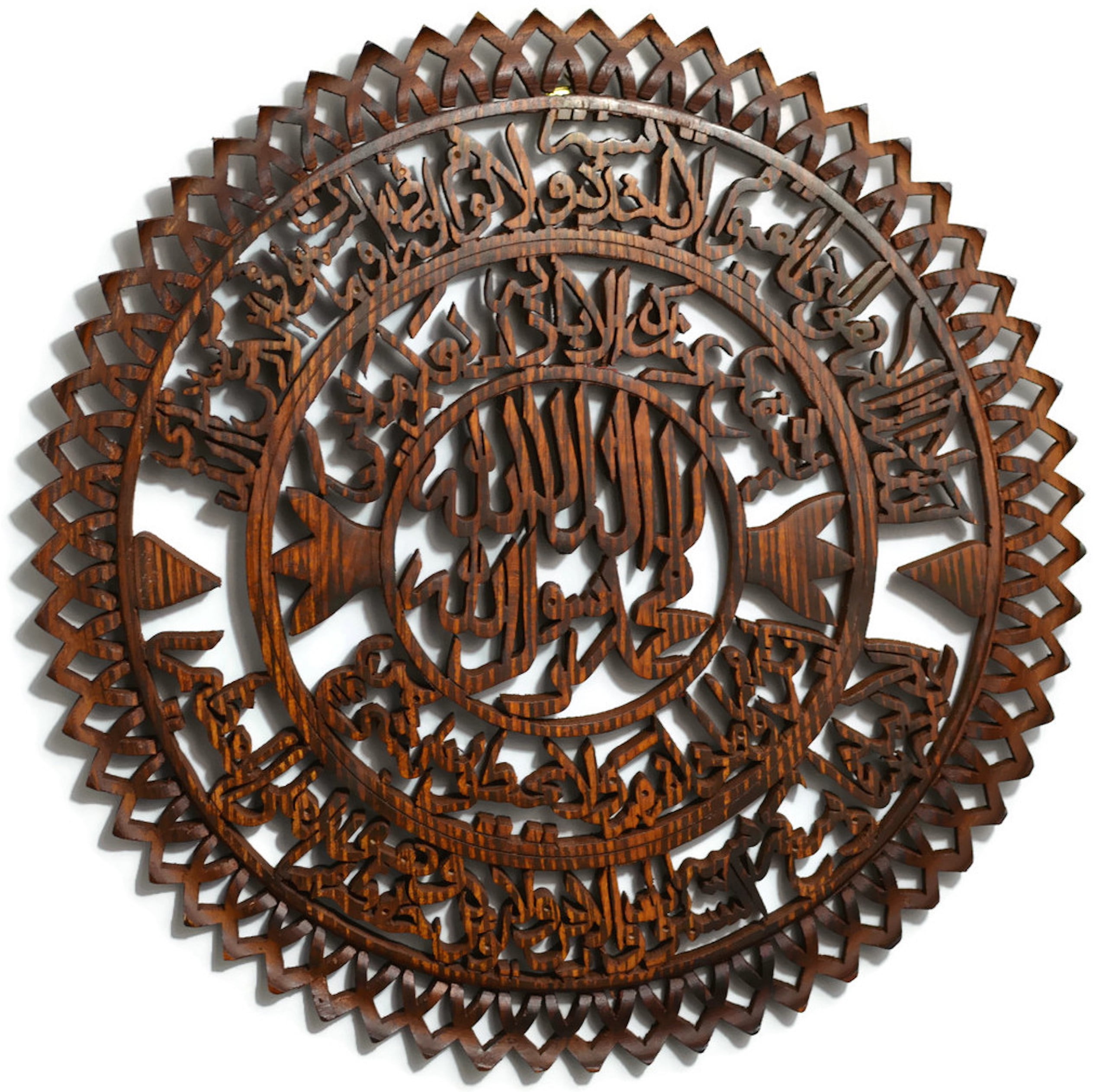 New Islamic Gift Ayat Ul Kursi Stay At Home Housewarming Gift Solid Wood Wall Art Ayatul Kursi Aiatal Korsi With Shahada First Kalima Kalma Hand Crafted Decorative Display Plaque 17 Diameter