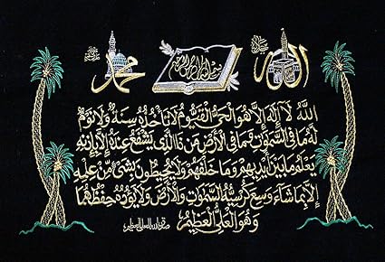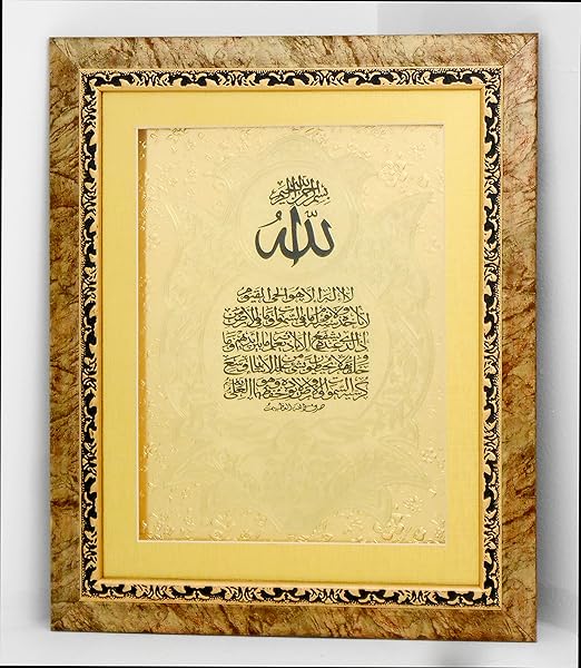 Amazon Com Framed Islamic Wall Art Eid Or Housewarming Gift Ayat Ul Kursi Arabic Tapestry The Holy Quran Muslim Resin Wall Frame Allah Mohamad 4 Quls God 99 Names Ayat Al Kursi Horizontal 984 Home Kitchen