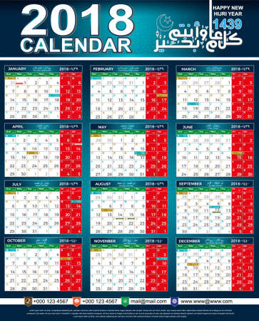 2018 Islamic Hijri Calendar Template Design Version 6 Stock Vector C Pixar 167035512