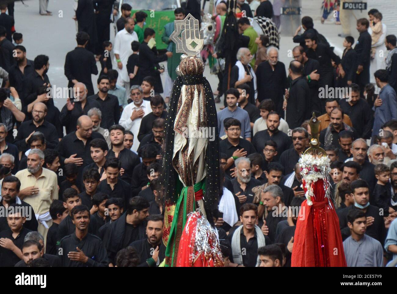 Peshawar Pakistan 28th Aug 2020 8 28 2020 8th Muharram Procession Passing Through Its Traditional Route At Imam Bargah Agha Syed Alam Shah Shiite Muslims Attend A Muharram Procession Muharram The First Month Of